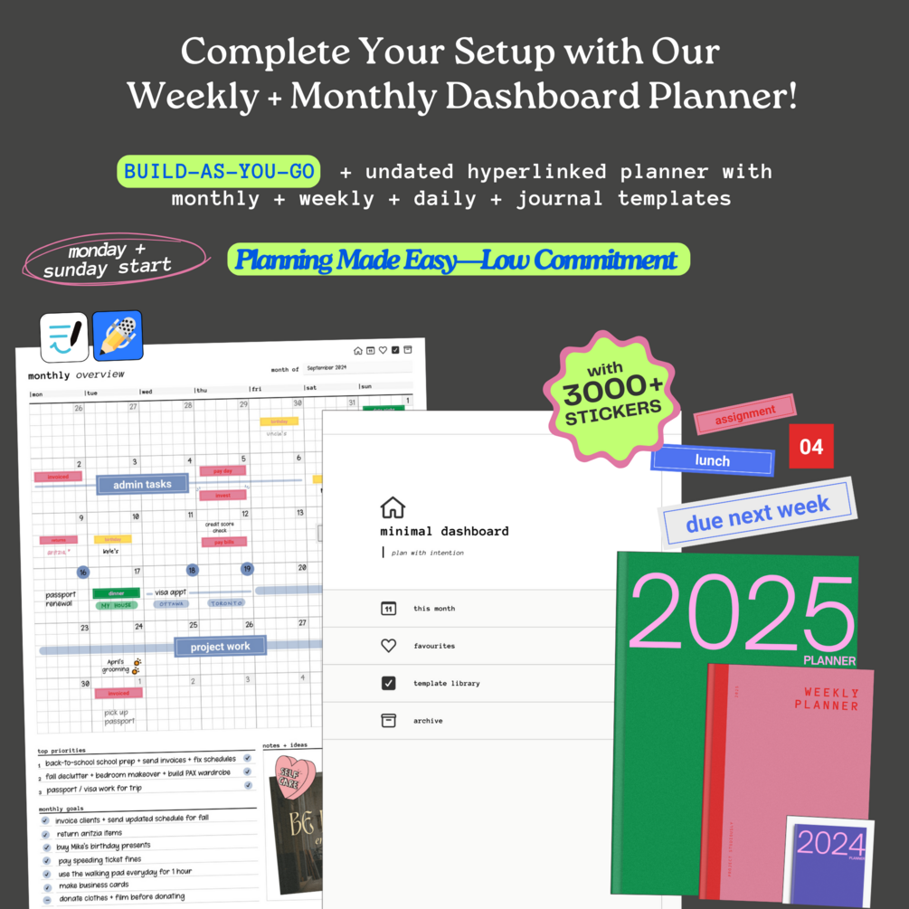 PLEASE NOTE: If you purchase the weekly/monthly dashboard planner, the digital stickers and covers come with it as a bundle!