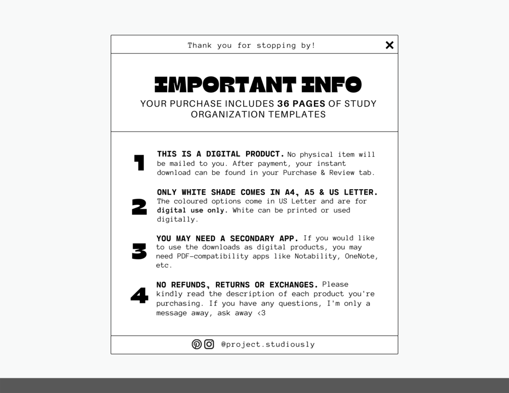 If you have any problems, don't hesitate to get in touch with me via my Instagram @project.studiously...I'm only a dm away! Thank you for stopping by Project Studiously!